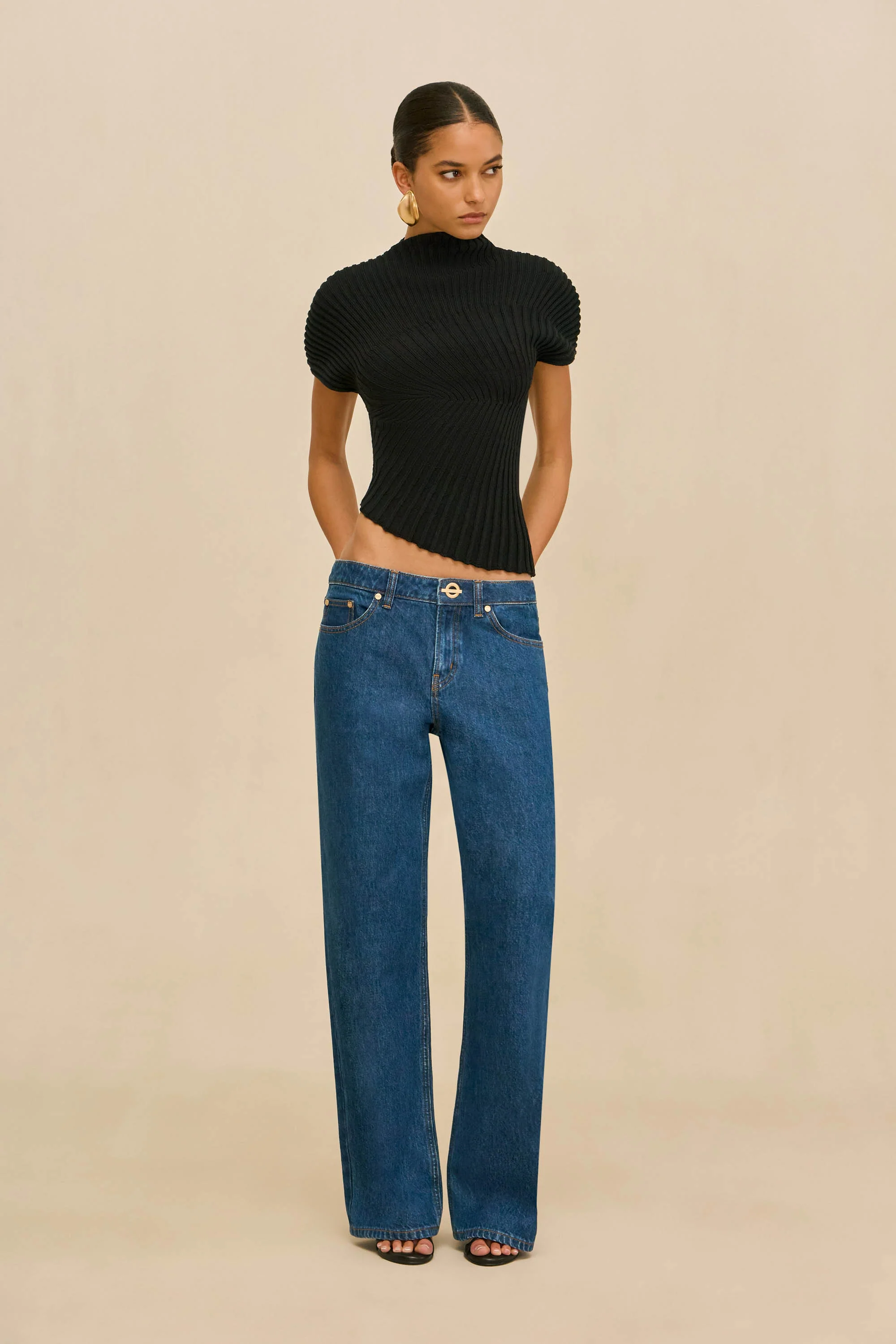 — Asymmetrical mock neck and hem