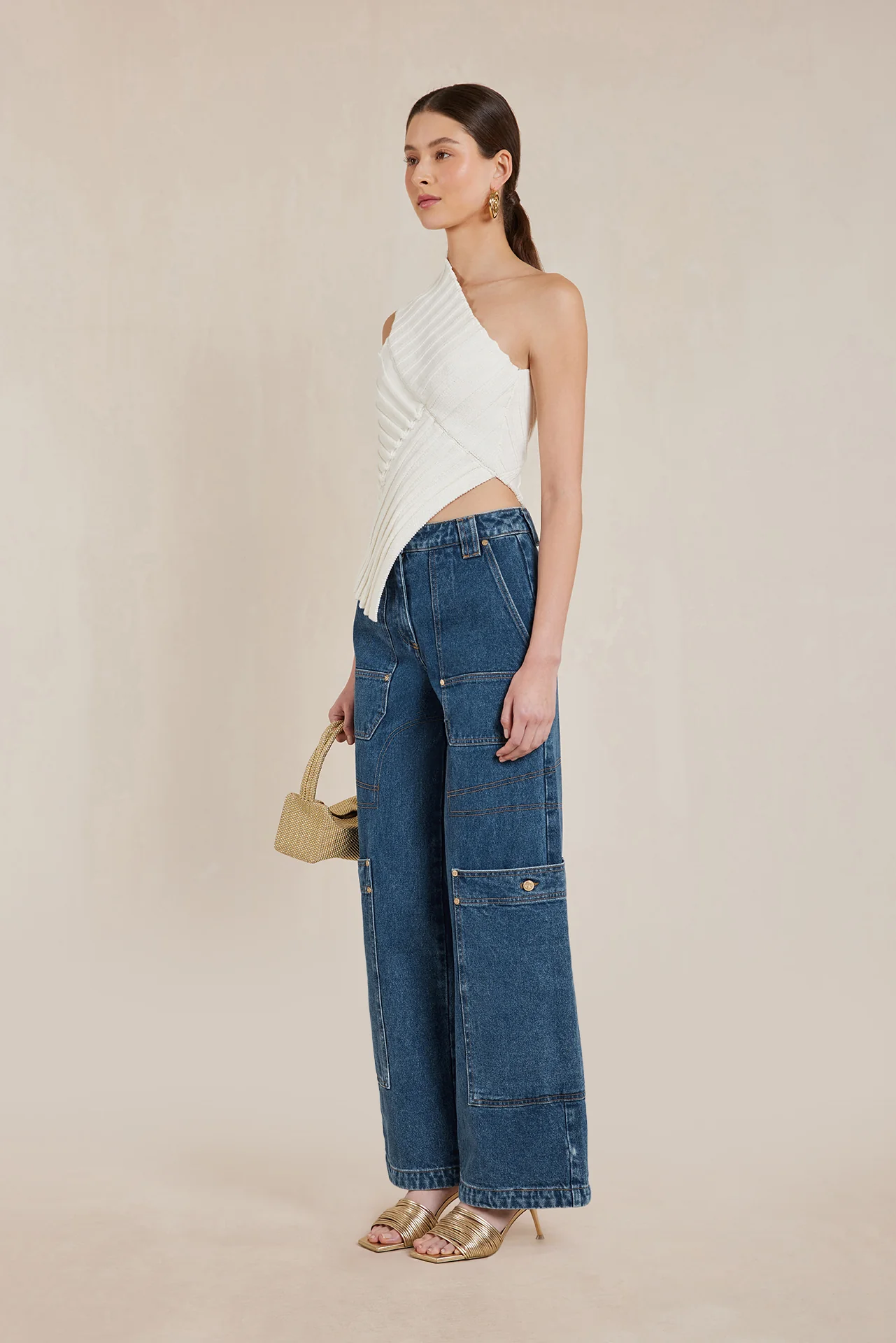 The modern, colliding angles of the Del Top are designed to create an ultra-flattering silhouette. A contrasting band extends from the waist up and over the right shoulder, while the left shoulder is exposed. Thoughtful cutouts and angular ribbed knit patterns add a hint of flair to this transitional knit wardrobe staple.