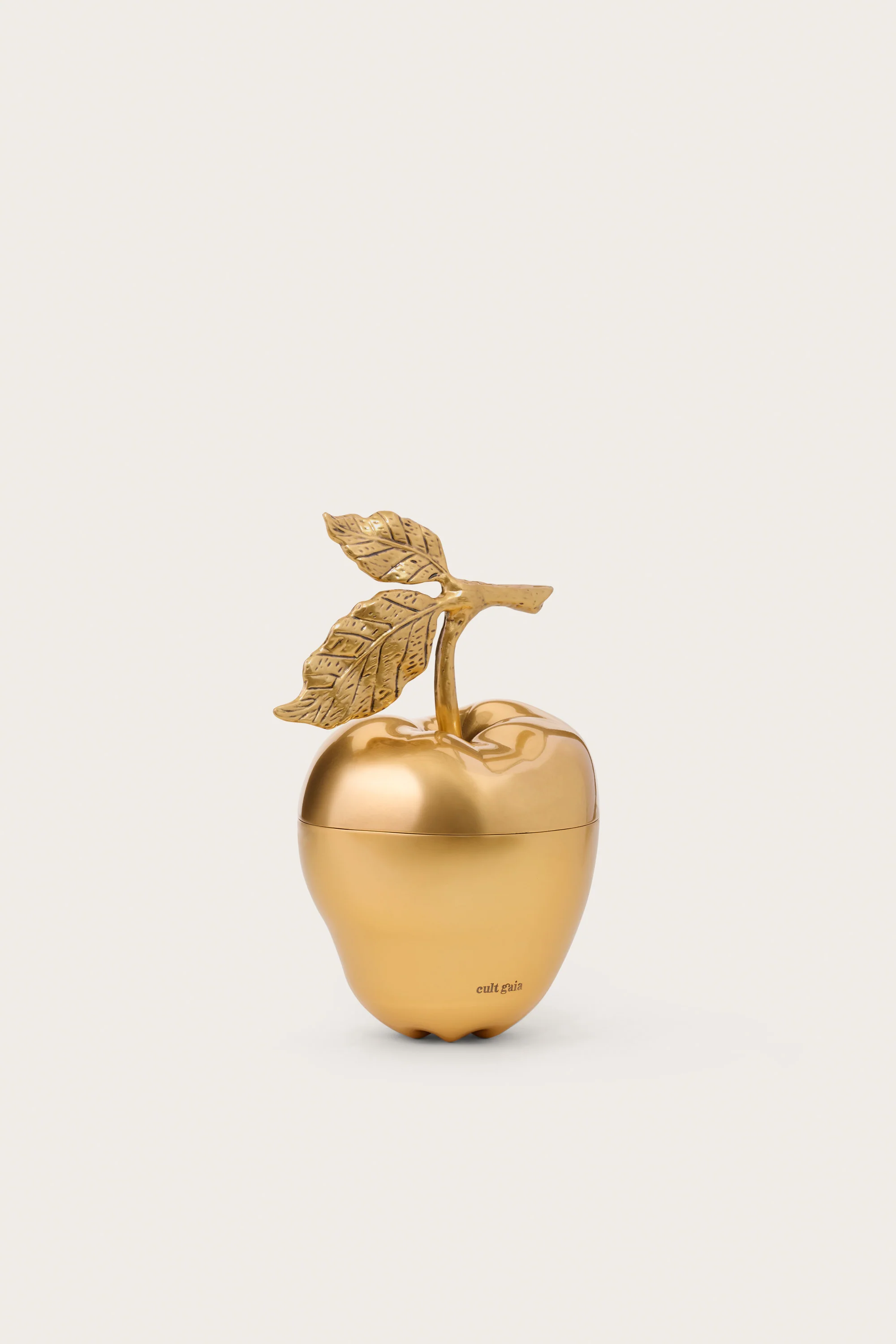 A sculptural clutch designed in the shape of a golden apple.